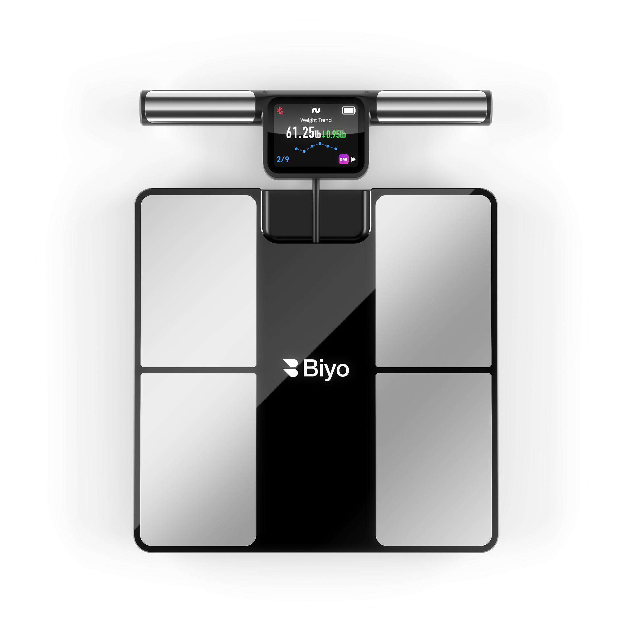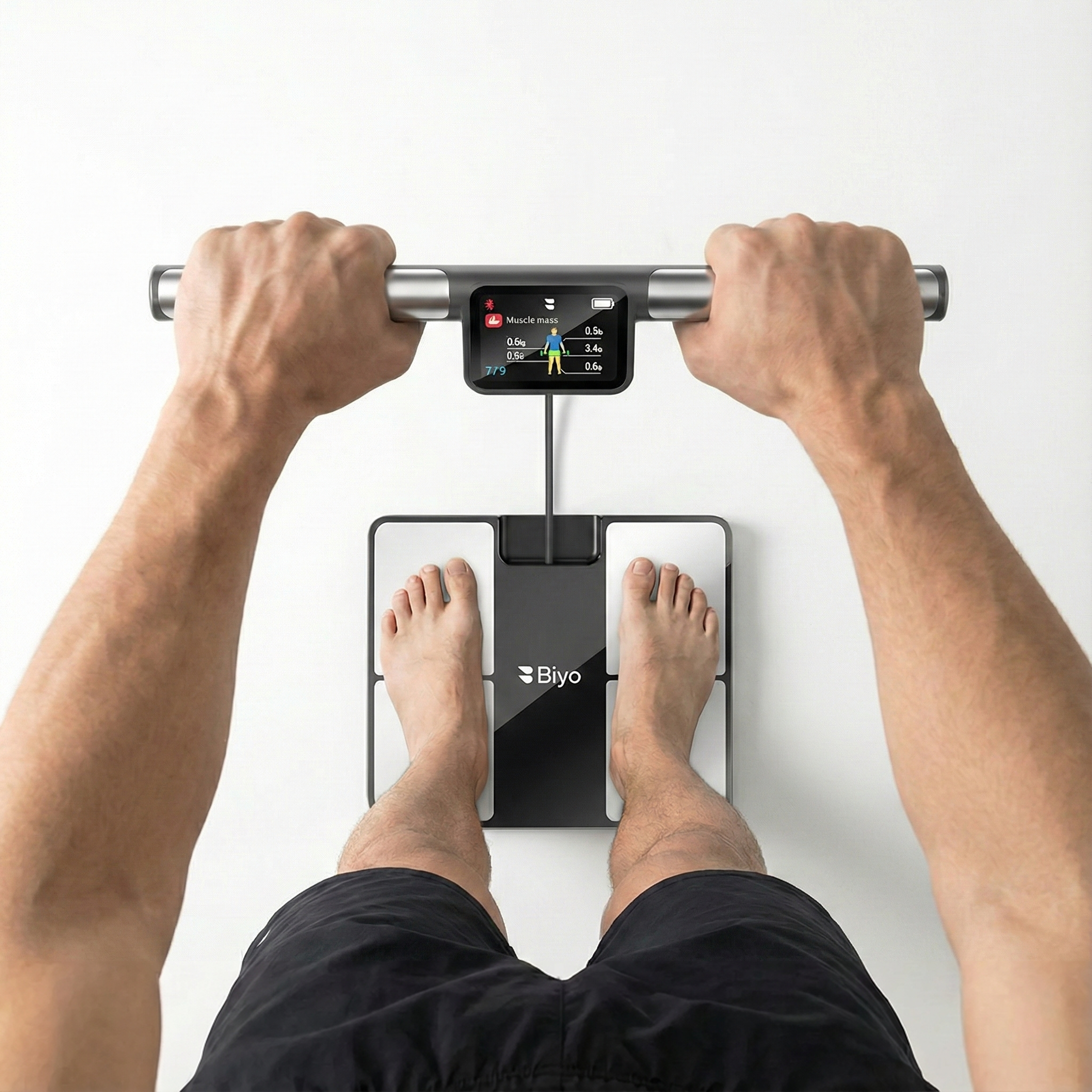 Biyo uses 8 electrodes across your hands and feet to directly scan your arms, legs, and torso giving you true full-body composition data.